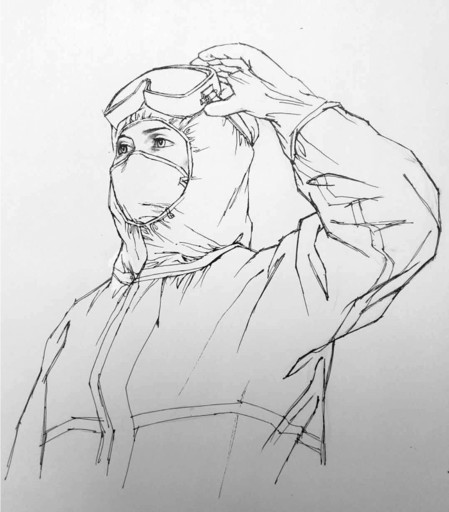 《眾志成城 抗擊疫情》郵票中醫(yī)護工作者草圖。