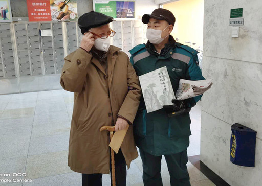 北京市西城區(qū)西外大街郵政支局投遞員侯毅來自湖北,疫情防控期間,無法回家的他把對家鄉(xiāng)的擔(dān)心和牽掛化為對段道內(nèi)百姓的貼心服務(wù)。面對激增的郵件,侯毅主動(dòng)承擔(dān)了兩個(gè)投遞道段的工作,每天從早上7點(diǎn)開始,一直忙到深夜。對于年齡較大的老年人更是特別關(guān)心,悉心了解他們的需求。圖為侯毅服務(wù)社區(qū)的一位老人?!蹰Z迪 呂薇 攝影報(bào)道