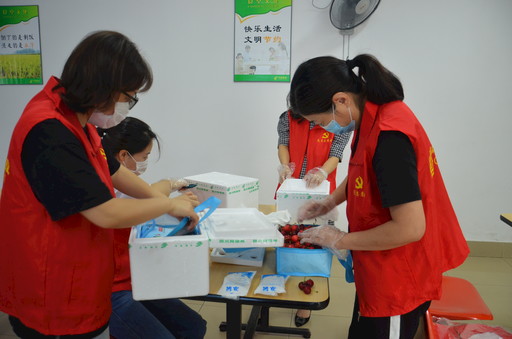 5月中旬,四川茂縣的甜櫻桃上市。浙江省玉環(huán)市郵政分公司積極參與當(dāng)?shù)厥姓_(kāi)展的消費(fèi)扶貧助力對(duì)口地區(qū)脫貧攻堅(jiān)活動(dòng),為茂縣甜櫻桃拓銷路、暢渠道。該分公司采用冷鏈物流的運(yùn)輸方式,將茂縣甜櫻桃運(yùn)到玉環(huán)市,再通過(guò)同城配送將甜櫻桃送到客戶手中。5月下旬至6月初,玉環(huán)市分公司已配送4批、近6600公斤茂縣甜櫻桃,助力拓寬茂縣優(yōu)質(zhì)農(nóng)產(chǎn)品銷售渠道。圖為玉環(huán)市分公司黨員志愿者在配送前檢測(cè)櫻桃品質(zhì)。 □葉瑋 攝影報(bào)道