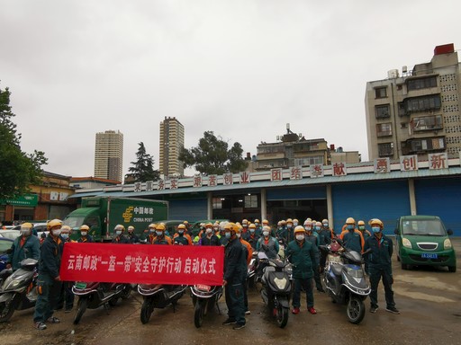 為貫徹落實(shí)全國(guó)“一盔一帶”安全守護(hù)行動(dòng)部署要求,全力促進(jìn)快遞員佩戴安全頭盔行動(dòng),5月27日,云南省交警總隊(duì)車管處、省寄遞事業(yè)部速遞業(yè)務(wù)責(zé)任中心、昆明市郵政分公司共同召開云南警郵聯(lián)動(dòng)“一盔一帶”啟動(dòng)大會(huì),會(huì)上,省交警總隊(duì)車管處相關(guān)人員為快遞騎手普及“一盔一帶”相關(guān)知識(shí),開展“一盔一帶”知識(shí)有獎(jiǎng)?chuàng)尨?,并現(xiàn)場(chǎng)為快遞員發(fā)放頭盔?!鯅淙A 攝影報(bào)道