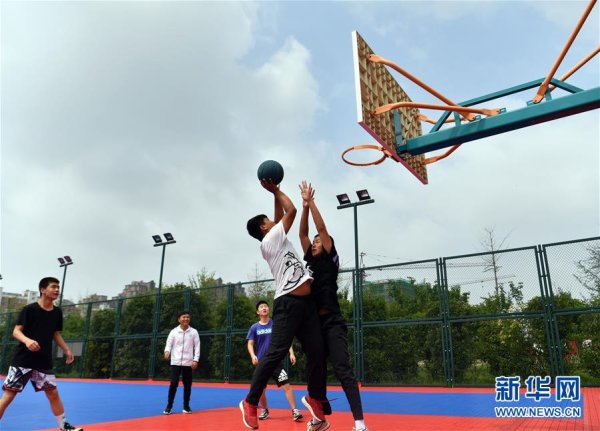 市民在許昌鹿鳴湖體育公園打籃球(6月18日攝)。 新華社記者 李嘉南 攝