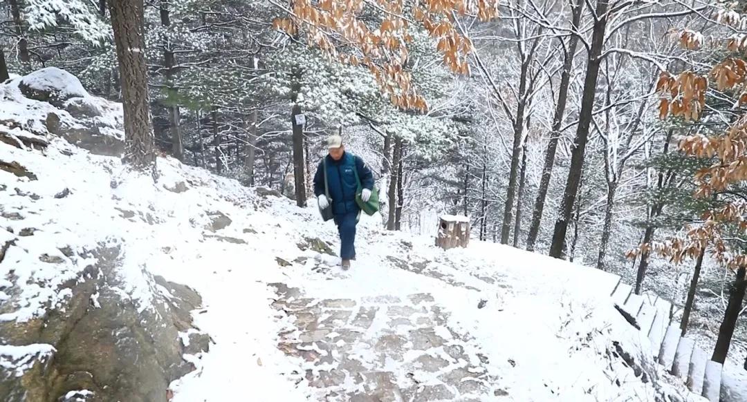 冬天,山上的氣溫通常達(dá)到零下十幾攝氏度,甚至零下二十幾攝氏度。凜冽的寒風(fēng)吹在臉上像刀割一樣疼,即使在這種冰天雪地的天氣里,徒步上山,汗水也會(huì)濕透全身的衣服、頭發(fā),風(fēng)一吹就會(huì)成為冰溜。在剛下完大雪的一天,行至玉皇頂時(shí),突然刮起了旋風(fēng),他只好一手緊緊抱住身邊的一塊大石頭,一手死死地護(hù)著郵件。旋風(fēng)離去,陣陣寒風(fēng)依然不斷,由于保持抱石頭的姿勢(shì)太久,宋憲臣整個(gè)人幾乎被凍在了石頭旁。