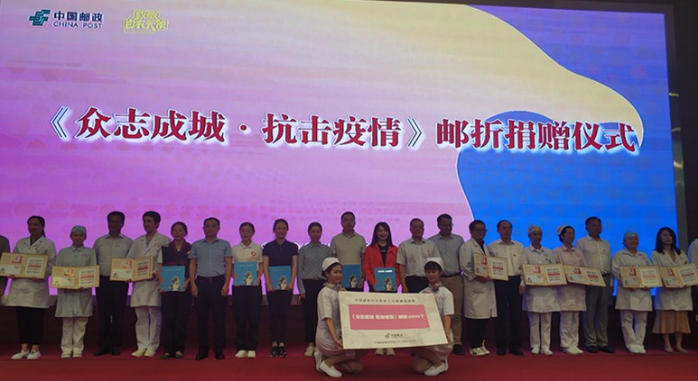 活動中還舉行了《眾志成城?抗擊疫情》郵折捐贈活動,一直以來,中國郵政堅(jiān)持以發(fā)行郵票的方式紀(jì)念、支援國家發(fā)生的重大災(zāi)害、重大疫情,并將郵票發(fā)行收入捐獻(xiàn)用于救災(zāi)抗疫。此次中國郵政將向中國紅十字會總會捐贈郵票和郵品收入2800萬元,向奮戰(zhàn)在抗擊疫情一線的近30萬名醫(yī)務(wù)工作者捐贈價值1500萬元的定制郵折,共計(jì)4300萬元。這是近年來中國郵政發(fā)行抗疫救災(zāi)郵票捐贈額最高的一次。本次捐贈儀式上,中國郵政集團(tuán)有限公司云南省分公司向云南省衛(wèi)生健康委捐贈《眾志成城 抗擊疫情》郵折3000個。