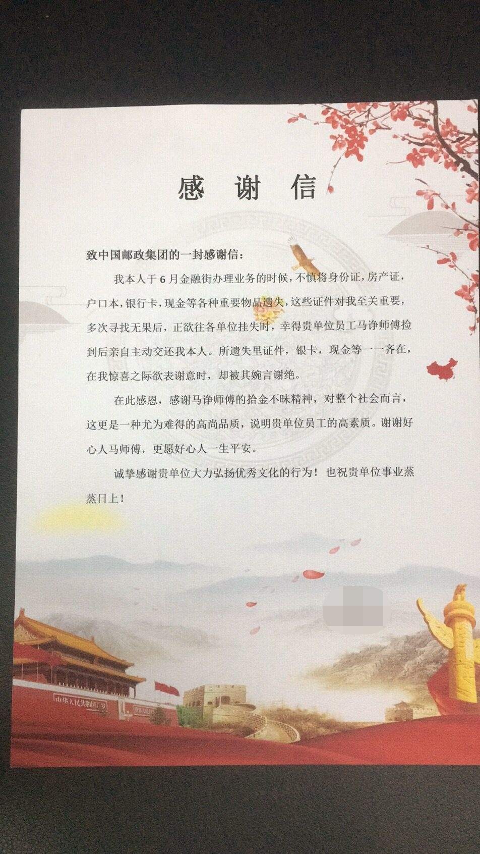 就在前幾天,一位手拿錦旗的用戶來到了西城區(qū)西單支局金融街營業(yè)部的門前,點(diǎn)名要找郵政小哥馬諍師傅。