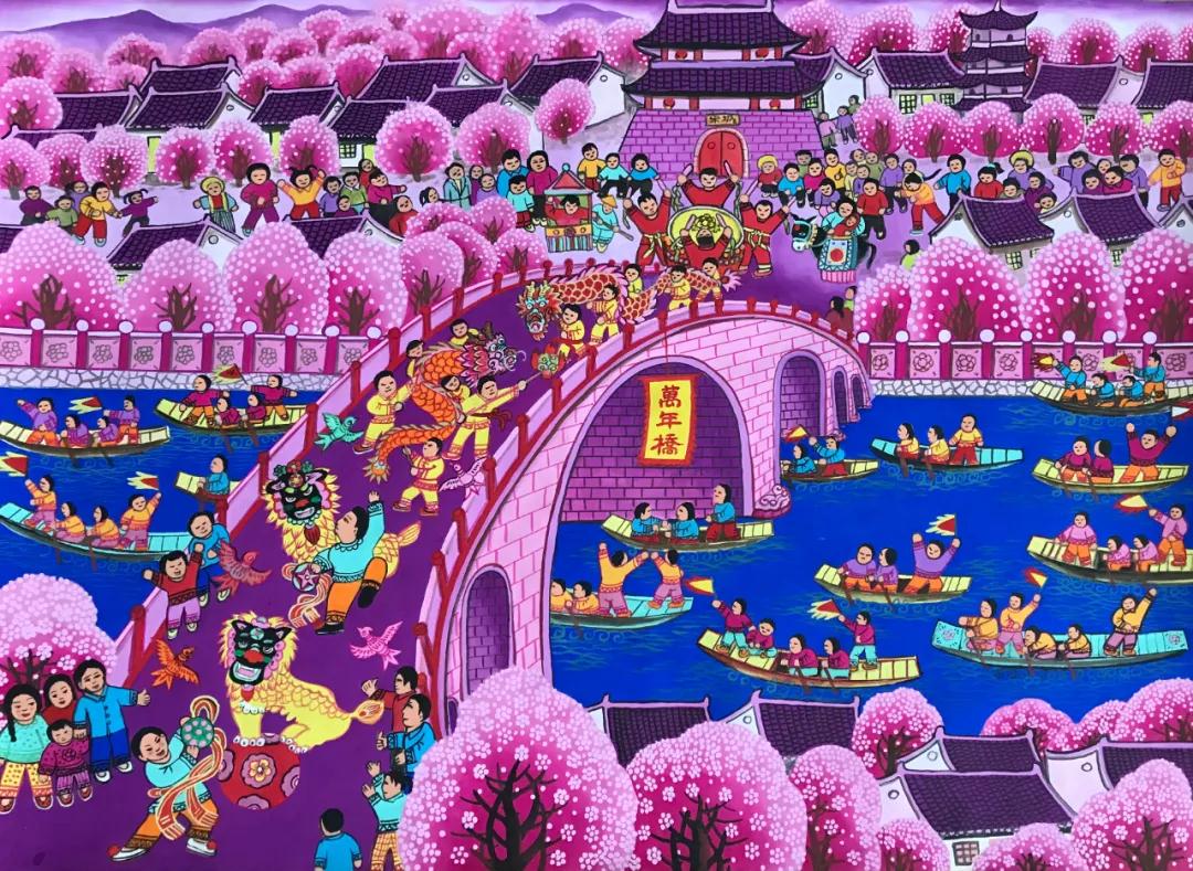 “農(nóng)民畫的靈感來自農(nóng)村生活,傳統(tǒng)農(nóng)民畫多以豐收為主題,飽含著農(nóng)民對吃飽飯的渴望;近年來,畫作題材不斷豐富、內(nèi)容更加多元,不僅表現(xiàn)了對未來生活的向往,更是對當下幸福生活的深情寫照,”青州農(nóng)民畫院院長宋曉表示,農(nóng)民畫的發(fā)展史,正是中國農(nóng)村發(fā)展變化的生動縮影。