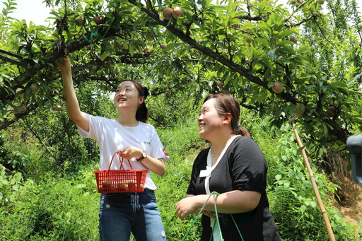 7月19日,浙江省紹興市、嵊州市郵政分公司兩級郵政惠農(nóng)電商團隊把直播間搬到了嵊州市金庭鎮(zhèn)青山頭村桃形李基地,通過直播帶貨的方式,幫助當?shù)靥倚卫罘N植戶開展“線上直播+線下團購”銷售。當天,累計銷售桃形李2000多單,銷售量超過5000公斤。今年以來,嵊州市分公司克服疫情影響,積極為當?shù)剞r(nóng)民合作社提供“直播+寄遞+電商”多維度服務,助力當?shù)剞r(nóng)產(chǎn)品銷售。圖為郵政工作人員與當?shù)貙I(yè)合作社負責人一起在做桃形李采摘的直播。□俞勁松 王剛 攝影報道
