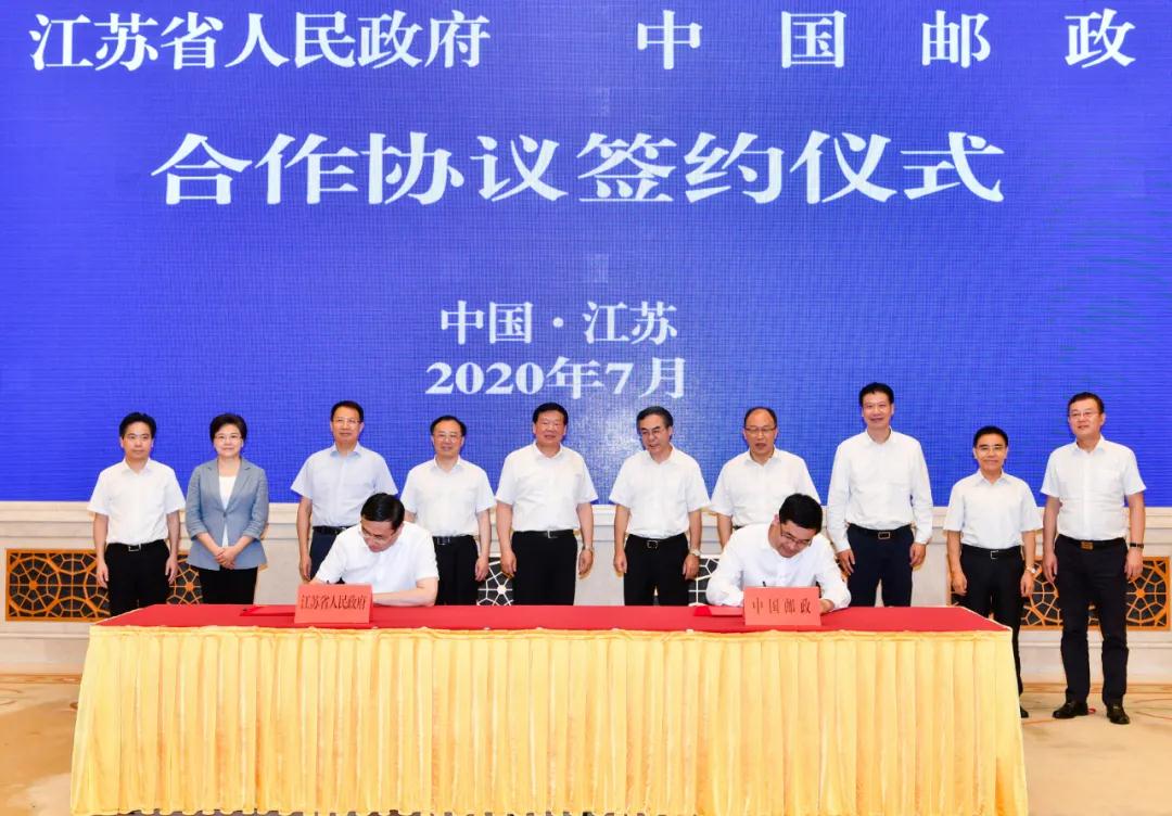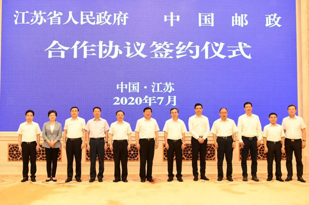 7月30日,中國郵政集團有限公司與江蘇省人民政府在南京簽署戰(zhàn)略合作協(xié)議。江蘇省委書記婁勤儉、省長吳政隆會見中國郵政集團有限公司黨組書記、董事長劉愛力,黨組副書記、總經(jīng)理張金良一行,并共同出席簽約儀式。江蘇省委常委、省委秘書長郭元強,副省長費高云,南京市市長韓立明,省政府秘書長陳建剛,集團公司副總經(jīng)理康寧參加有關(guān)活動。