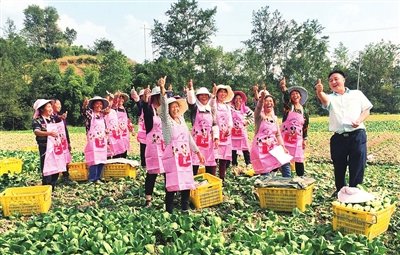 張武和菜農(nóng)們一起,在菜地里上演一場時尚大氣的圍裙秀?!觞S倩 攝