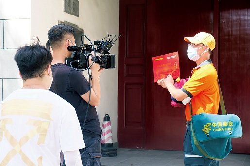 日前,中央廣播電視總臺(tái)央視頻和中國(guó)郵政分別在北京、上海和四川阿壩開展了“高考錄取通知書駕到”的直播。從繁華的城市到偏遠(yuǎn)的鄉(xiāng)村,郵政投遞員秉承“人民郵政為人民”的宗旨,克服各種困難,保證將錄取通知書及時(shí)、準(zhǔn)確、安全送到考生手中。據(jù)悉,中國(guó)郵政和央視頻還聯(lián)合推出高考錄取通知書寄遞在線查詢服務(wù)系統(tǒng),考生可在線查詢錄取通知書的寄遞情況。圖為央視頻攝制組、上海郵政投遞員在39攝氏度高溫下直播錄取通知書投遞。