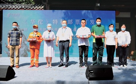 8月19日,適逢“中國醫(yī)師節(jié)”,湖北省武漢市郵政分公司在黃鶴樓公園舉行《華佗》郵票首發(fā)儀式暨“守望相助,風雨同舟”抗疫主題文化展。在活動現(xiàn)場,武漢郵政向在新冠肺炎疫情防控期間勇敢逆行、默默奉獻的醫(yī)護人員、環(huán)衛(wèi)工人、快遞員代表贈送了精美的郵品,向守護城市的逆行者表達衷心的感謝和崇高的敬意。武漢郵政藝術團還帶來了精彩的文藝表演,來自武漢少年郵局的學生代表朗誦了“致敬最美逆行者的一封信”,受到了現(xiàn)場觀眾的歡迎。