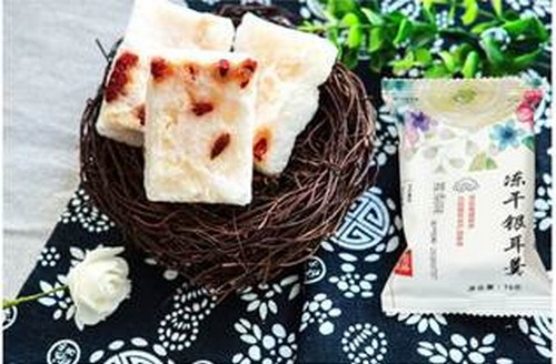 “古江”沖泡即食銀耳羹,選用古田新鮮銀耳,并采用優(yōu)質(zhì)原料,輔料經(jīng)過熟制工藝,經(jīng)過先進(jìn)的FD凍干技術(shù)制作而成。生產(chǎn)工藝既保留了鮮燉銀耳的色、香、味、形,又不破壞銀耳本身的營養(yǎng)物質(zhì),使得產(chǎn)品具有食用方便、口感好等特點?!肮沤便y耳羹不添加防腐劑、香精和色素,是一道純天然的食材,銀耳羹中還加入了雪梨、紅棗和枸杞,味道濃香軟糯、甘甜可口,具有較高的營養(yǎng)價值。
