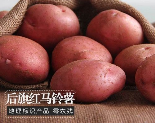 “后旗紅”土豆是馬鈴薯的一個品種,因種植在中國薯都烏蘭察布察右后旗而得名?!昂笃旒t”馬鈴薯種植基地位于察哈爾火山地質(zhì)公園火山群下,北緯41度。采用微噴方式,水源來自150米火山巖下深層礦泉水。其產(chǎn)地烏蘭察布察哈爾右翼后旗,地屬溫帶大陸性季風氣候,無霜期短、晝夜溫差大,降雨集中在馬鈴薯生長期季節(jié),雨熱同季,土壤為沙性土,為馬鈴薯生長提供了得天獨厚的優(yōu)越條件。