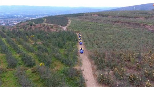 九月的甘肅,微風(fēng)漸涼,葉子開(kāi)始枯黃,果實(shí)卻一顆顆飽滿的綴滿枝頭。秋風(fēng)吹過(guò)西北甘肅的果林,大地像被換上了一種絢麗的色彩。