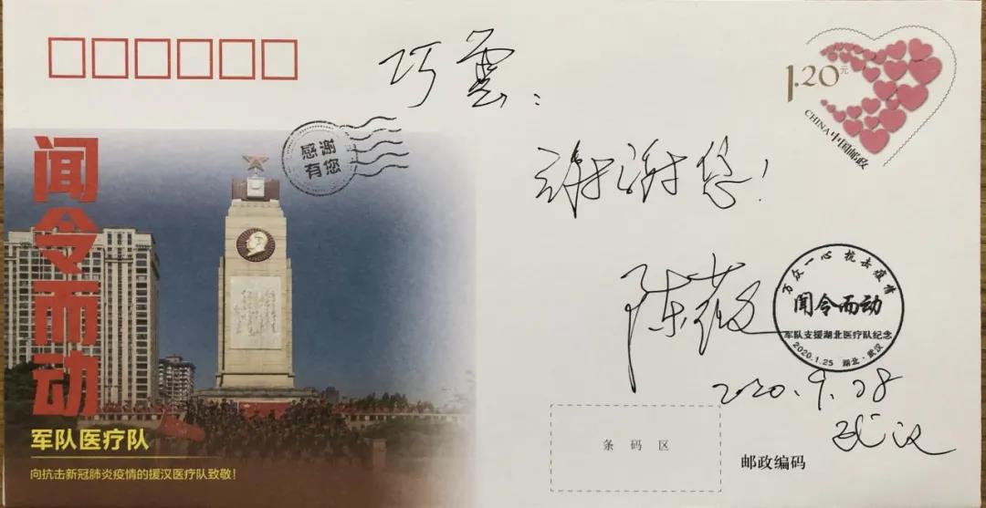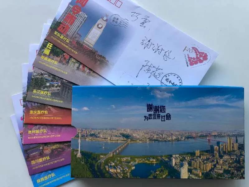 疫情期間,武漢市分公司為表達(dá)武漢人民對(duì)不計(jì)報(bào)酬、不論生死的援漢醫(yī)療隊(duì)感恩、感謝、感激之情,以31支援漢醫(yī)療隊(duì)為主題,融合武漢人文風(fēng)光和特色地標(biāo)元素,與人民日?qǐng)?bào)社新媒體中心聯(lián)合開發(fā)了這套《感恩有你》抗疫紀(jì)念郵資封。用郵政特有的“文化符號(hào)”致敬仁心、感恩大愛,銘記為武漢拼過命的人們。9月24日,在挑選送給108位勇士的禮物時(shí),從軍29載的陳薇院士經(jīng)過反復(fù)斟酌和比較,在武漢市分公司推薦的多款抗疫郵品中,最后敲定了這套含有軍隊(duì)醫(yī)療隊(duì)紀(jì)念封的郵品。