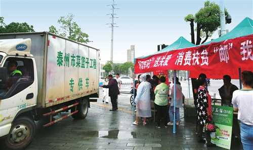 泰州郵政與泰州農(nóng)業(yè)農(nóng)村局聯(lián)合舉辦“新型農(nóng)業(yè)經(jīng)營主體農(nóng)副產(chǎn)品社區(qū)行”公益助農(nóng)活動?!踔苋悍?攝