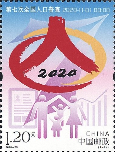 中國(guó)郵政定于11月1日發(fā)行《第七次全國(guó)人口普查》紀(jì)念郵票一套1枚,全套面值1.20元,計(jì)劃發(fā)行量為695萬套。