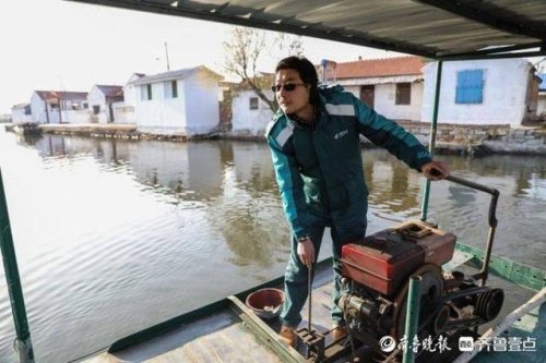 早上八點(diǎn)半,南陽湖上托起太陽,湖面波光粼粼。王少朋背著綠色的郵差包,路過賣早點(diǎn)的、賣鮮魚的,踩著青石板,穿過幾條巷子來到碼頭?!耙荒戤?dāng)中,冬天最難熬,穿再厚都能凍透。今天天氣已經(jīng)算是很好了。要是遇到雨雪天、大風(fēng)大霧,那就麻煩了。”此時(shí),微山縣氣溫3攝氏度,湖上溫度要比這低好幾度。