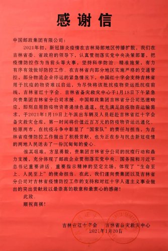 面對疫情,吉林郵政高度重視,堅決按照黨中央決策部署和集團公司工作安排,全面動員,全面統(tǒng)籌,全面協(xié)調(diào)工作,把人民群眾生命安全和身體健康放在第一位,加大防控力度,切實抓緊抓細抓實各項工作。特別是在吉林省內(nèi)部分地區(qū)實施嚴格的交通管控、部分物流企業(yè)停運的緊急情況下,吉林郵政主動作為,積極與吉林省紅十字會溝通,緊急開通抗疫物資運輸綠色通道,義務(wù)運送抗疫物資。