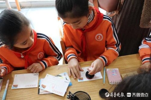 首發(fā)活動結束后,孩子們現(xiàn)場書寫明信片、加蓋郵戳、投入信箱寄給外地的小伙伴,邀請他們一起做追光少年,聽黨話,跟黨走,做黨的好娃娃。