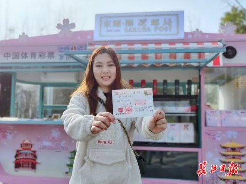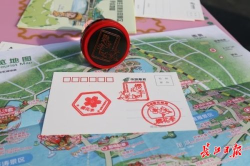 另外,櫻花郵局專門打造了東湖風景紀念戳、賞櫻地標戳等18款專屬紀念戳。賞櫻期間,游客可在櫻花郵局領(lǐng)取一張手繪地圖,集齊5處指定地標的紀念戳,即可領(lǐng)取一份專屬櫻花禮品。