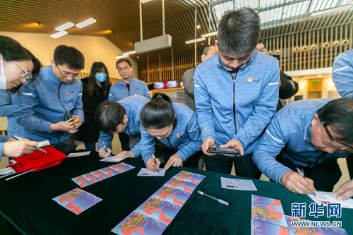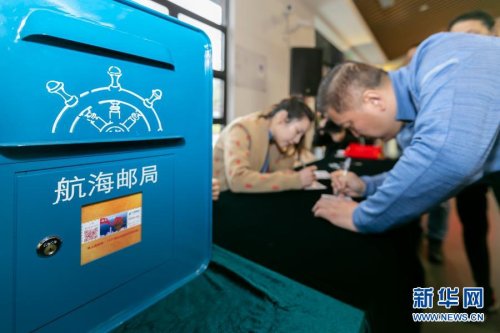 3月17日,黨員代表在《海上啟航地》主題郵品上寫上祝福語(yǔ)。