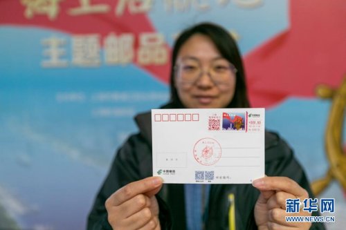 3月17日,黨員代表在現(xiàn)場(chǎng)手持展示《海上啟航地》主題郵品。