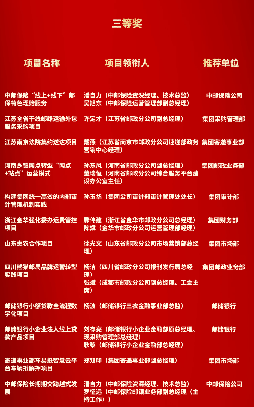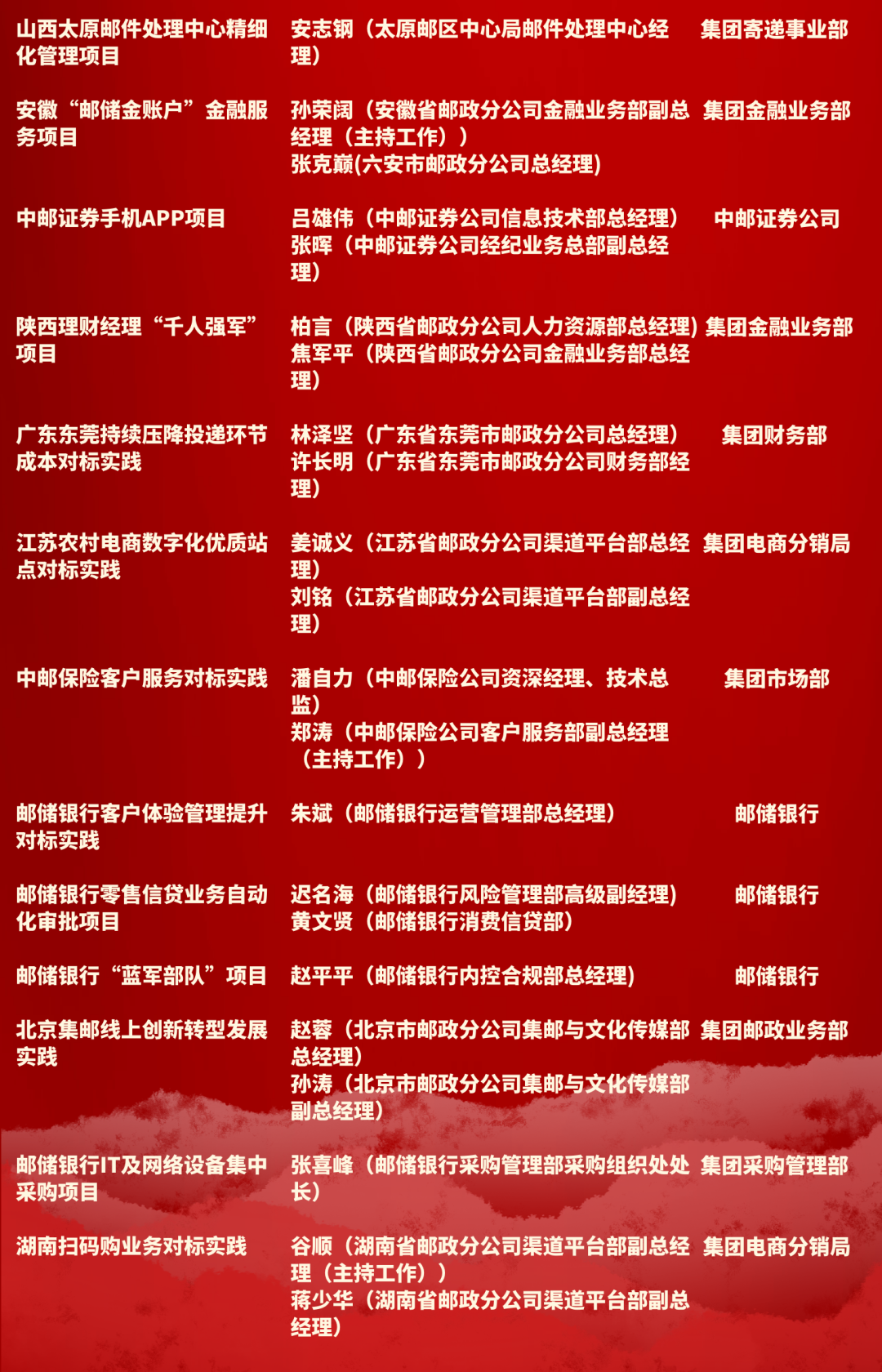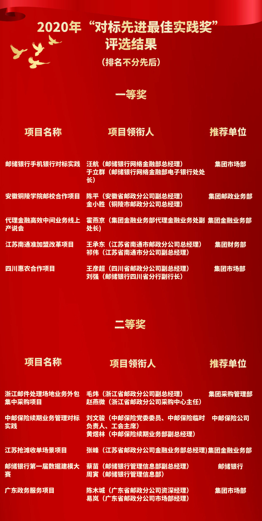 會(huì)議明確了2021年勞動(dòng)競(jìng)賽項(xiàng)目?jī)?nèi)容和要求。2021年,集團(tuán)公司勞動(dòng)競(jìng)賽將堅(jiān)持問(wèn)題導(dǎo)向、目標(biāo)導(dǎo)向的競(jìng)賽原則,緊密圍繞打造“六維共生”的新郵政發(fā)展格局,堅(jiān)持以改革創(chuàng)新為動(dòng)力,以推動(dòng)中國(guó)郵政高質(zhì)量發(fā)展為主線,聚焦集團(tuán)公司年度工作會(huì)議確定的發(fā)展目標(biāo)、重點(diǎn)工作和重點(diǎn)項(xiàng)目,針對(duì)各項(xiàng)業(yè)務(wù)的發(fā)展重點(diǎn)、難點(diǎn)及薄弱環(huán)節(jié),共確定競(jìng)賽項(xiàng)目17個(gè),包括16個(gè)業(yè)務(wù)競(jìng)賽項(xiàng)目和“對(duì)標(biāo)先進(jìn)最佳實(shí)踐獎(jiǎng)”綜合性項(xiàng)目。