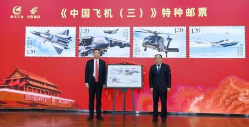 為慶祝中國共產(chǎn)黨成立100周年、新中國航空事業(yè)發(fā)展70周年,4月17日,展現(xiàn)中國航空工業(yè)最新航空裝備發(fā)展成就的《中國飛機(jī)(三)》特種郵票正式公開發(fā)行。在北京舉行的首發(fā)儀式上,中國航空工業(yè)集團(tuán)黨組副書記李本正,中國郵政集團(tuán)黨組成員、副總經(jīng)理康寧共同為郵票首發(fā)揭幕。中國集郵有限公司同步發(fā)行4枚《中國飛機(jī)(三)》首日封。