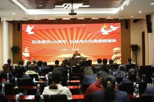 報告團(tuán)主講人劉石安現(xiàn)年91歲,是原二十軍59師炮兵參謀,劉老精神矍鑠,身著老軍裝,胸前掛著軍功章和紀(jì)念章,首先向大家介紹了上海人民子弟兵——原二十軍的歷史。二十軍是最早入朝參戰(zhàn)部隊之一,雄赳赳氣昂昂地跨過鴨綠江,同美國為首的由十六個國家組成的“聯(lián)合國軍”展開了殊死戰(zhàn)斗。兩年中,經(jīng)歷了第二次戰(zhàn)役(即著名的長津湖戰(zhàn)役)、第五次戰(zhàn)役、華川阻擊戰(zhàn)等無數(shù)次大小戰(zhàn)斗,重創(chuàng)敵軍,屢建戰(zhàn)功。隨后,他向大家講起抗美援朝戰(zhàn)爭,劉老講述了楊根思和“冰雕連”的感人故事。在一次戰(zhàn)斗中,楊根思率領(lǐng)連隊打退美軍8次進(jìn)攻,最后只剩他一人時,他以大無畏的革命精神,抱起炸藥包沖向敵群,與敵人同歸于盡……在長津湖戰(zhàn)役中,穿著單薄衣服的志愿軍戰(zhàn)士埋伏在零下四十?dāng)z氏度的陣地上,100多名士兵在冰天雪地中保持作戰(zhàn)姿勢,靜默犧牲?!氨襁B”戰(zhàn)士寧愿凍死也不撤退的精神給大家極大的震撼。