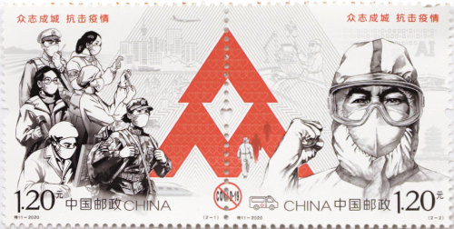 另外,十一屆三中全會(huì)召開、奧林匹克運(yùn)動(dòng)會(huì)、中國夢(mèng)——國家富強(qiáng)系列郵票等重大事件、題材,濃縮在一枚枚郵票中,讓人眼前一亮。其中,中國郵政于2020年5月11日特別發(fā)行的《眾志成城 抗擊疫情》郵票1套2枚,采用連票形式,郵票圖案中“眾”字將兩枚郵票緊密連接,寓意著面對(duì)突發(fā)重大公共衛(wèi)生事件,在黨中央堅(jiān)強(qiáng)領(lǐng)導(dǎo)下,全國上下凝聚起眾志成城、抗擊疫情的強(qiáng)大力量。