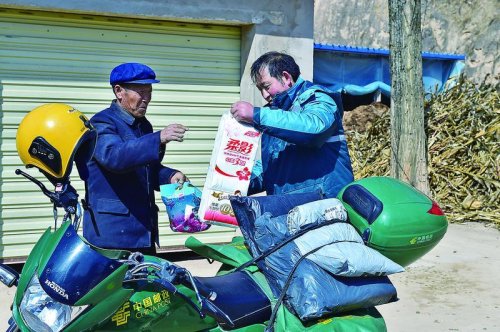 在趙滿明的摩托車上,經(jīng)常會出現(xiàn)與工作“不相符”的物品,有時是衛(wèi)生紙等生活用品,有時是瓜果蔬菜,這都是他幫投遞區(qū)域內生活不便的群眾代買的物品。“我每天都來往在鎮(zhèn)上,幫他們代買一些生活用品,都是舉手之勞?!壁w滿明輕描淡寫地說。