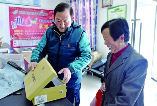 趙滿明將代買的生活用品送到殷家城鄉(xiāng)寺山村村民白有君手中