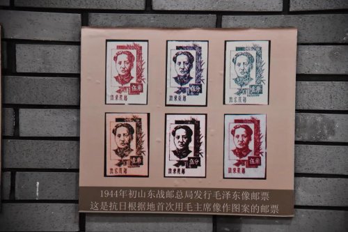 山東戰(zhàn)郵紀(jì)念館內(nèi), 首次用毛主席像作圖案的郵票,被擺放在一進(jìn)門(mén)的位置,被作為鎮(zhèn)館之寶。原山東省郵電管理局史志辦公室退休干部扈德玉曾參與編輯《中國(guó)解放區(qū)郵票史·華東卷(上)》,廣泛搜集戰(zhàn)郵資料,他說(shuō),抗日戰(zhàn)爭(zhēng)時(shí)期,在黨中央的正確領(lǐng)導(dǎo)下,抗日戰(zhàn)爭(zhēng)取得了可喜的成績(jī),毛澤東被人們崇敬,因此要發(fā)行這套郵票。據(jù)他向膠東戰(zhàn)郵管理局監(jiān)印員于安了解,該套郵票是在膠東的《大眾報(bào)》印刷廠印刷,不僅是中國(guó)首套,也是世界首套用毛主席像作圖案的郵票。