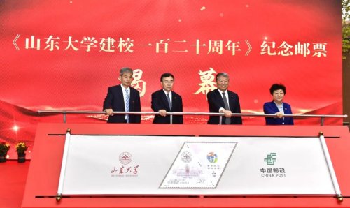 10月15日上午,《山東大學(xué)建校120周年》紀念郵票首發(fā)式在山東大學(xué)中心校區(qū)舉行。中國郵政集團有限公司黨組書記、董事長劉愛力,山東大學(xué)黨委書記郭新立、校長樊麗明、常務(wù)副校長王琪瓏出席儀式,山東大學(xué)黨委副書記張永兵主持儀式。劉愛力,郭新立,樊麗明,山東省郵政分公司黨委書記、總經(jīng)理韓廣岳,共同為《山東大學(xué)建校120周年》紀念郵票揭幕。