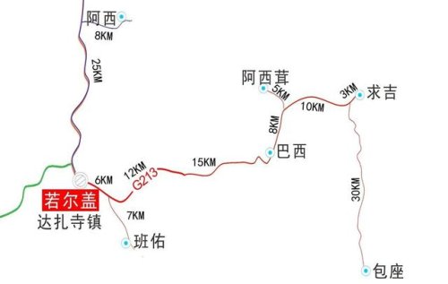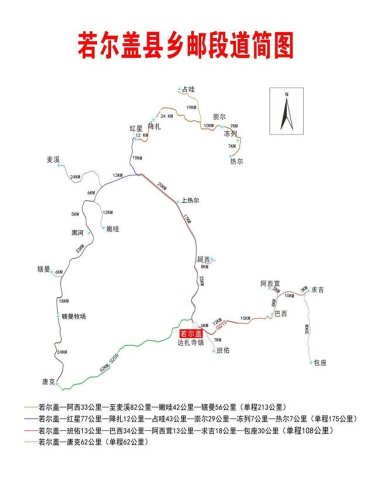 劉旭峰說,長征郵路單程108公里,從若爾蓋縣城出發(fā),沿途途徑班佑13公里-巴西34公里-阿西茸13公里-求吉18公里,最后到達包座30公里。