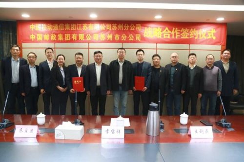 日前,蘇州移動與中國郵政集團(tuán)有限公司蘇州分公司簽訂戰(zhàn)略合作協(xié)議,蘇州移動總經(jīng)理李寶祥,副總經(jīng)理王利民、齊貝貝,中國郵政集團(tuán)有限公司蘇州分公司總經(jīng)理陳力烈等領(lǐng)導(dǎo)出席了簽約儀式。