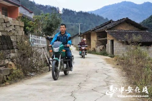 吳義陽(yáng)騎著摩托車(chē)將物品郵遞到村里