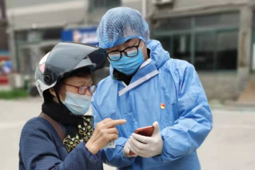 4月1日,集郵與傳媒黨支部的第一批志愿者劉衛(wèi)東和顏小娟準(zhǔn)時(shí)來(lái)到學(xué)田社區(qū)報(bào)到,恰好當(dāng)天趕上崇川區(qū)全員第二輪核酸檢測(cè),在與社區(qū)工作人員簡(jiǎn)單溝通情況后,兩人便迅速上崗,負(fù)責(zé)核酸采樣現(xiàn)場(chǎng)的秩序維護(hù)、體溫測(cè)量、采樣碼注冊(cè)等工作。