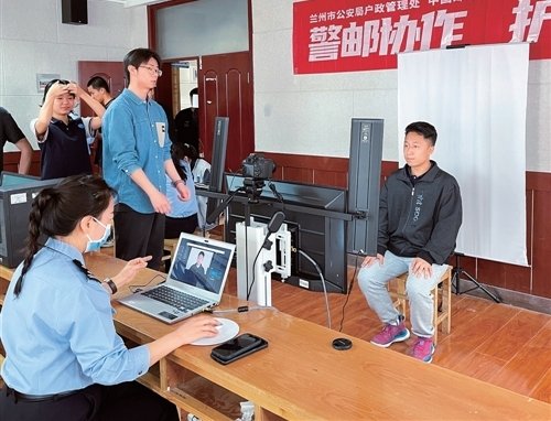 圖為近日在蘭州西北中學(xué),郵政工作人員和民警正忙碌著為考生們辦證。