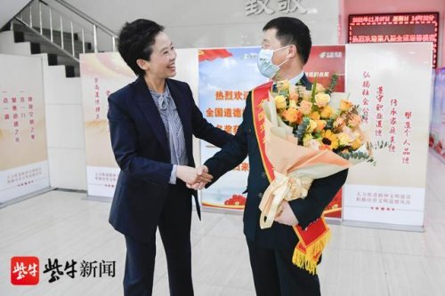 11月7日下午,第八屆全國道德模范提名獎(jiǎng)獲得者馬善民載譽(yù)歸來,歡迎儀式在連云港市郵政分公司隆重舉行。連云港市委常委、宣傳部部長趙云燕向馬善民送上鮮花,代表市委、市政府表示熱烈祝賀和崇高敬意,部分干部群眾代表參加了歡迎儀式。