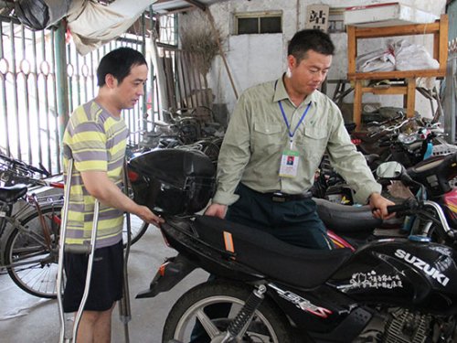 第一次看到孫友誼時,他被眼前的景象震撼了。那時孫友誼正杵著雙拐,雙腳艱難的在車棚里挪動,竭盡全力地將自行車、電瓶車擺放整齊??吹竭@一幕后,他果斷地將投遞電瓶車停在了一邊,默默地走進車棚,用了幾分鐘時間幫他把車輛擺放整齊后,就默默地騎著車走了。