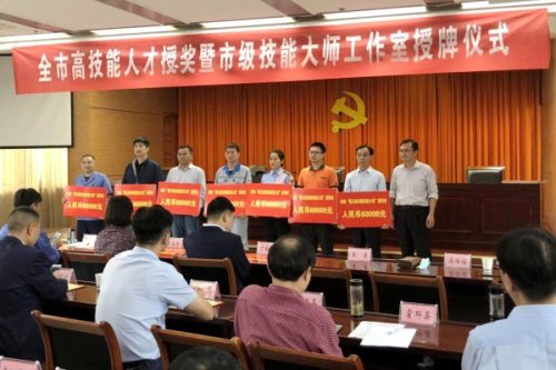 近日,六安市人社局舉行全市高技能人才授獎暨市級技能大師工作室授牌儀式。盧海龍因獲得“第五屆安徽省技能大獎”榮譽稱號,上臺接受表彰。在獲得省人社廳5萬元獎勵的基礎(chǔ)上,市人社局再獎勵6萬元,累計獲得獎勵11萬元。