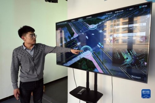 工作人員在雄安數(shù)字交通實(shí)驗(yàn)室介紹數(shù)字交通實(shí)驗(yàn)室項(xiàng)目(1月7日攝)。 新華社記者 駱學(xué)峰 攝