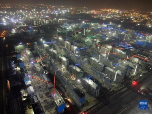 這是雄安新區(qū)容東片區(qū)華望城項(xiàng)目夜景(1月4日攝,無(wú)人機(jī)照片)。 新華社記者 駱學(xué)峰 攝