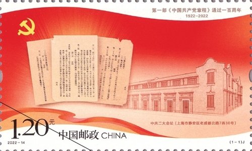 7月23日,《第一部<中國共產(chǎn)黨章程>通過一百周年》紀(jì)念郵票將發(fā)行。該套郵票一套1枚,全套面值為1.20元,計劃發(fā)行680萬套。