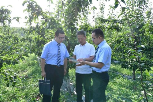 “崔老板,今年果園情況怎么樣?”一行人正在梨樹間穿行,就聽見(jiàn)幾人的腳步聲由遠(yuǎn)及近追了上來(lái),郵儲(chǔ)銀行淅川縣支行副行長(zhǎng)劉楠和郵政投遞員付浩熟門熟路打起招呼。