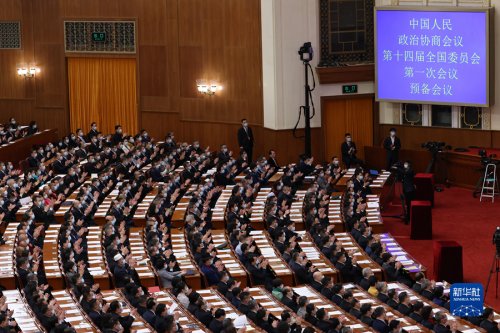 3月3日,中國人民政治協(xié)商會議第十四屆全國委員會第一次會議預(yù)備會議在北京人民大會堂舉行。新華社記者 張鋮 攝