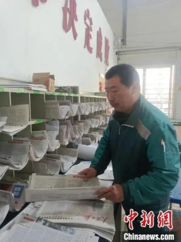 圖為中國郵政集團公司酒泉市分公司肅州區(qū)公司員工馬毅在整理報紙。(資料圖,中國郵政集團公司酒泉市分公司肅州區(qū)公司供圖)