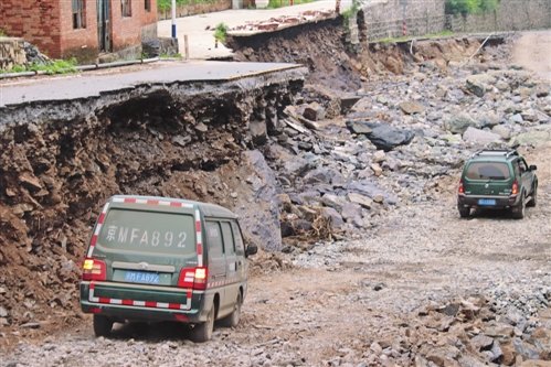 目前,受災(zāi)地區(qū)只有持救災(zāi)通行證的車輛才可以通行。進(jìn)入受災(zāi)地區(qū)后,可以看到路面清障工作基本完成,小型車輛可以通過,但受災(zāi)情況嚴(yán)重,泥石流、塌方隨處可見,部分房屋受損;臨水道路多數(shù)受損,有時(shí)甚至要在河床上臨時(shí)夯出的土路上行駛;在危險(xiǎn)路段,由領(lǐng)航車在前方探路排障,確認(rèn)安全后,再指揮郵車通行。受災(zāi)地區(qū)一些交通標(biāo)識(shí)被沖毀,通信訊號(hào)也未完全恢復(fù),加之部分道路受阻必須繞行,司機(jī)只能依靠經(jīng)驗(yàn)和離線地圖辨別方位,每一步都是未知。