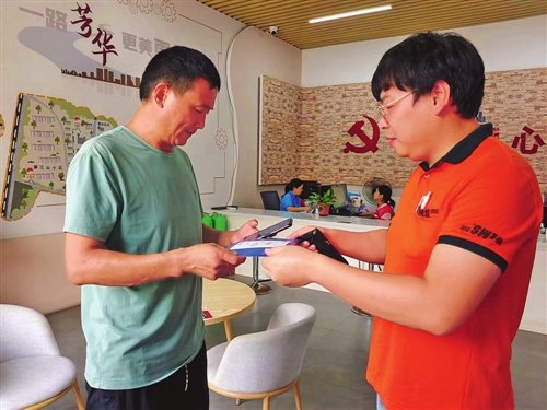 龔柱祺(右)將身份證郵件送到潛先生手中。